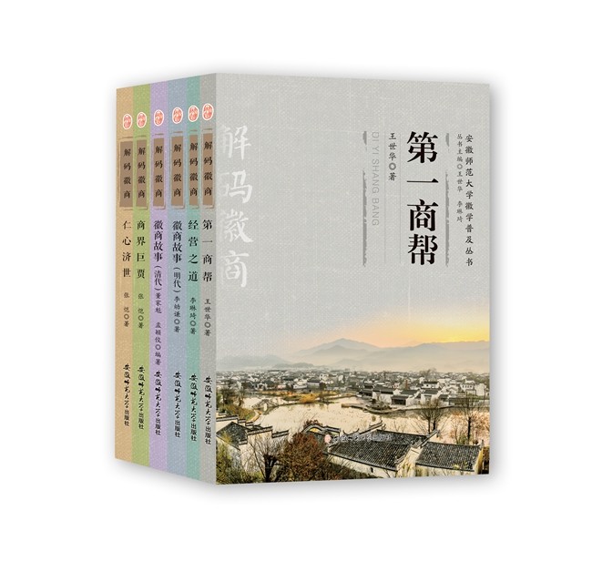 由王世华、李琳琦主编的“解码徽商”丛书,即“安徽师范大学徽学普及丛书”由安徽师范大学出版社2016年1月出版。该套丛书共有八本:《第一商帮》《贾而好儒》(待出)《经营之道》《仁心济世》《商界巨贾》《无徽不镇》(待出)《徽商故事(明代)》《徽商故事(清代)》等,分别从某一侧面较为详细地展示徽商鲜为人知的地方,从而达到普及徽商知识,弘扬徽商精神,传播徽商正能量。丛书之所以命名“解码徽商”,就是要将历史上徽商的真实情况介绍给广大读者,因此全套书的写作都是严格依据史实来编写的,即使是徽商故事,也不允许杜撰,而是完全有史实根据的。